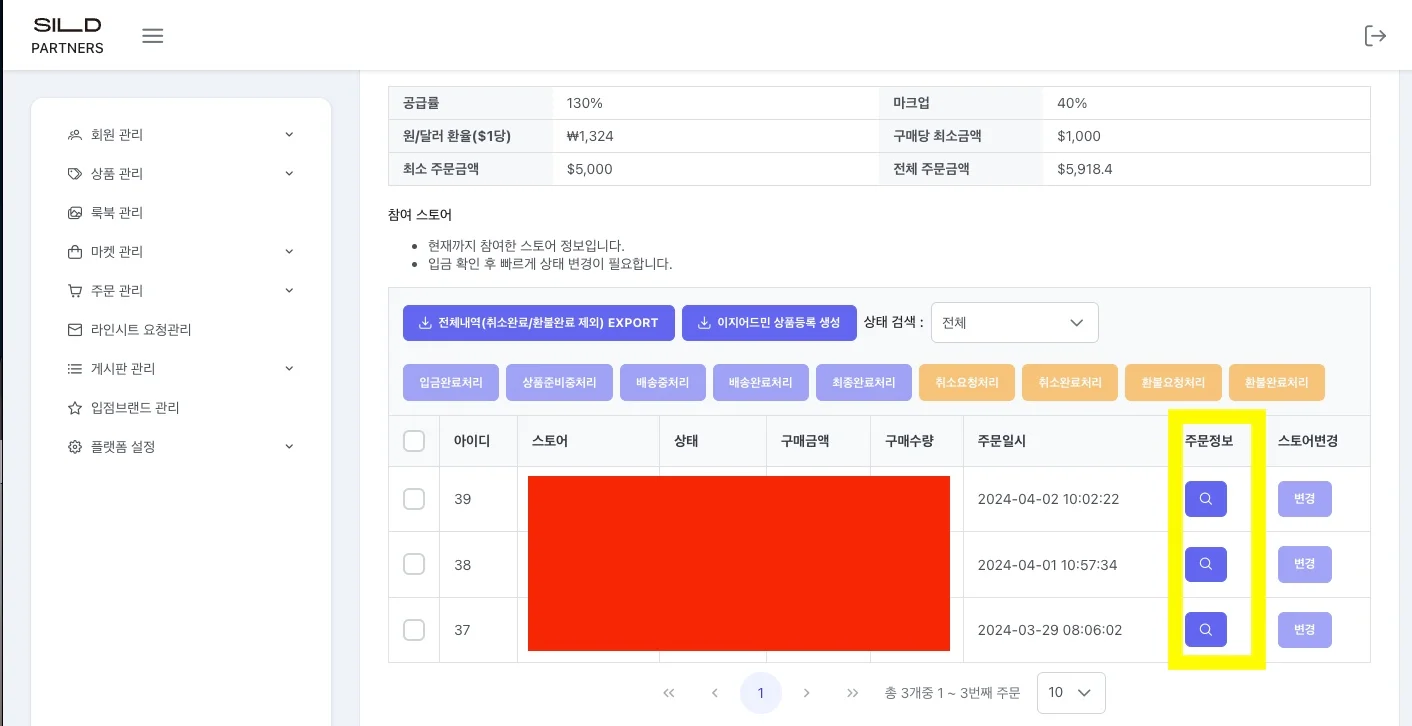 마켓 상세정보 조회에서 각 스토어 주문 정보 보기