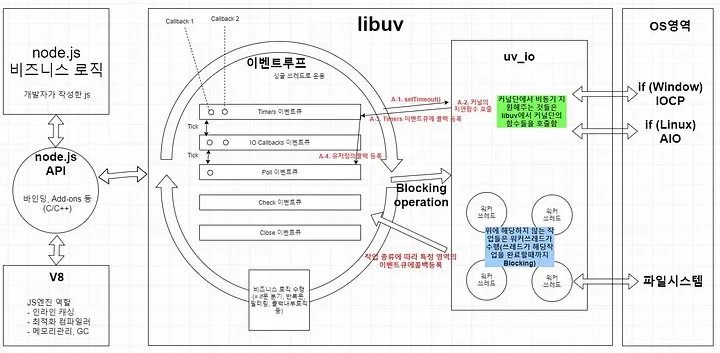 libuv라는 비동기 I/O 라이브러리를 사용
