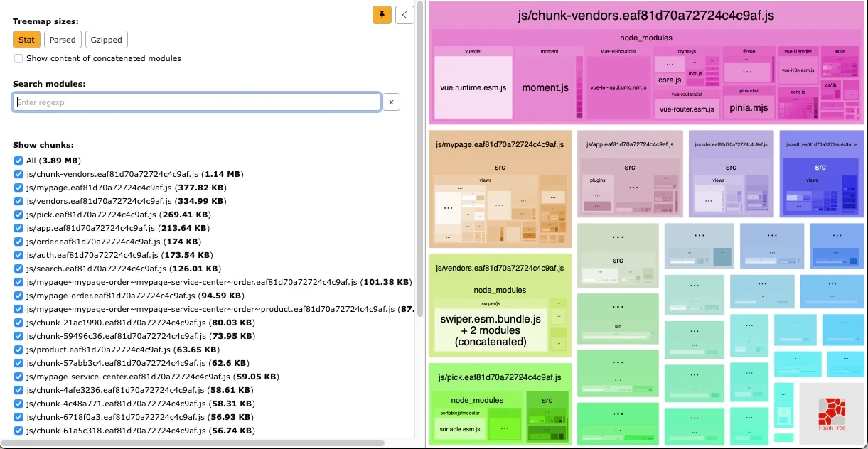 빌드된 파일 구조, 용량 확인