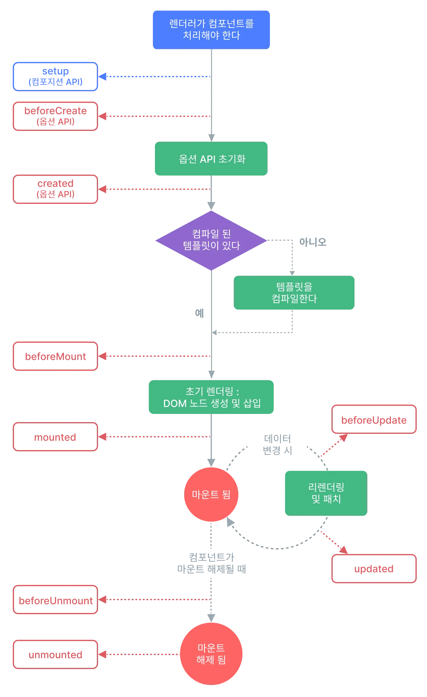 vue의 lifecycle, watcher나 재사용 변수 등 활용 가능