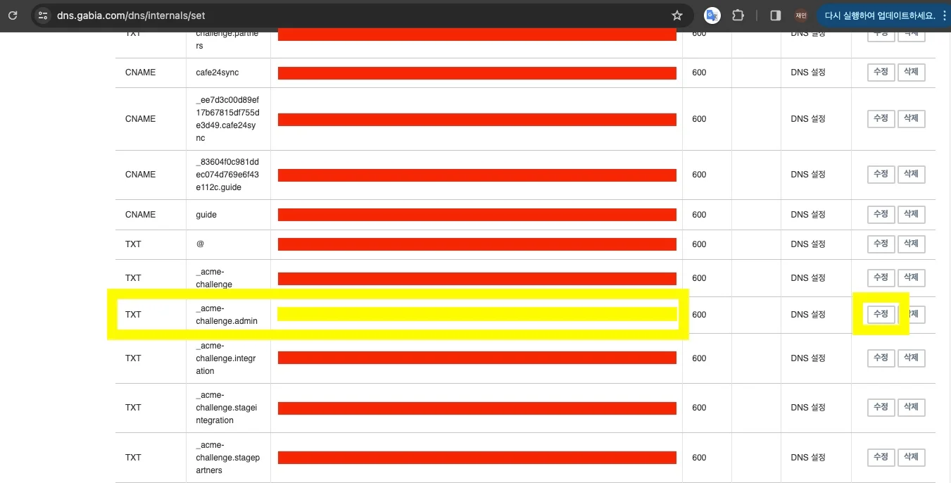 sudo certbot certonly -d admin.sild.app --manual --preferred-challenges dns입력시 아래와 같은 해시값 출력됨