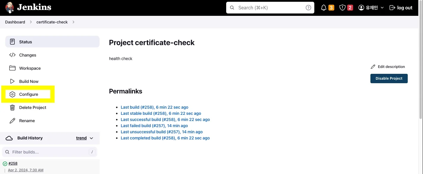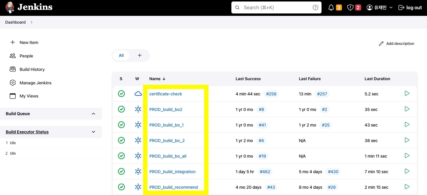 젠킨스 대시보드 접속해서 모든 job 클릭해서 상세페이지 접속